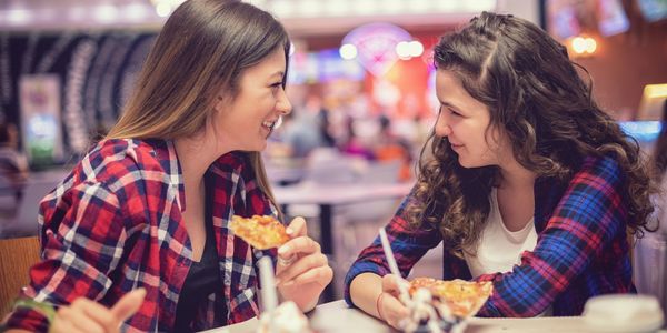 Image idea: A lively food court with families enjoying pizza, burgers, and fries.